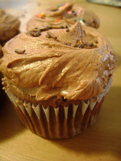 I made another batch of cupcakes this weekend.... chocolate with chocolate buttercream frosting. Too many to eat myself... so I'm sending them all to work with my husband today. Let the soldiers eat them!!! hehe