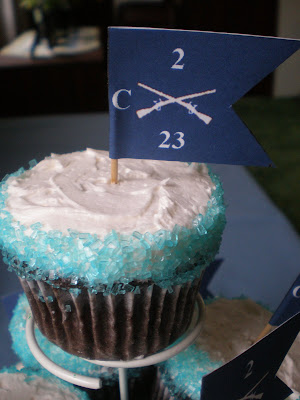 I had an FRG Meeting at my house this weekend and made customized cupcakes for the event. The flags on the cupcakes that I made are called "Guide-Ons" and each company in the Army has their own flag.