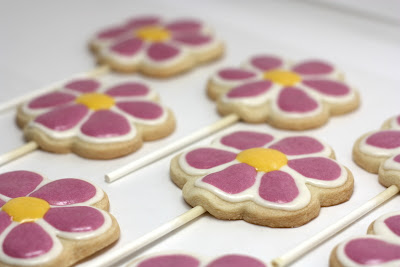 Just make sure your flower cookie cutter isn't too big. Something around 2-3 inches in diameter would be perfect. And get the 6 inch lollipop sticks.